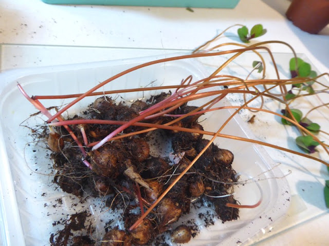Kun käenkaalit alkavat puskea uutta lehteä, on aika istuttaa niiden juurakot uuteen multaan.